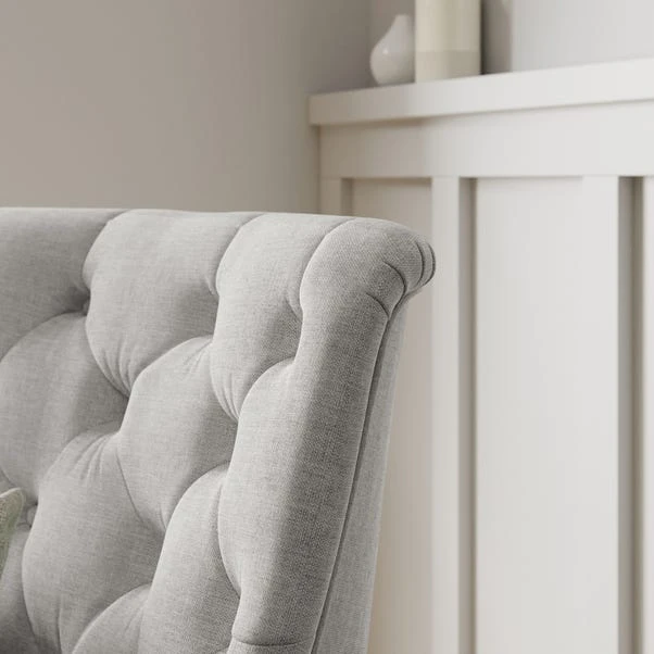 A chair to swoon over, the Arianna is as comfortable as it is stylish. A button-back design and soft, flatweave fabric offer retro appeal, while a strong construction of sturdy hardwood legs keeps this piece sturdy for years to come.