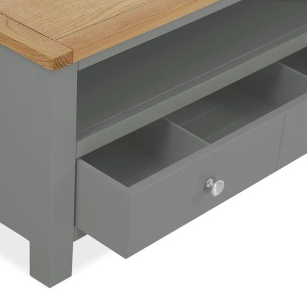 - Slate Grey painted finish with Waxed Oak veneer top