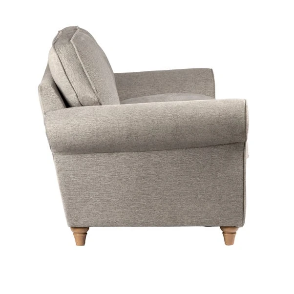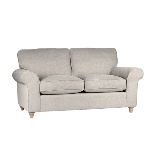 Designed with scrolled arms and turned wooden feet, the Rosa 2 Seater sofa offers an elegant, timeless style that would enhance any space. Finished in a choice of trendy colourways, this sofa is uphosltered in a soft and versatile textured weave fabric, decorated with piped edge detailing for a smart finish. Featuring fibre filled seat cushions and back cushions and a sprung base, this sofa will also provide luxurious comfort.