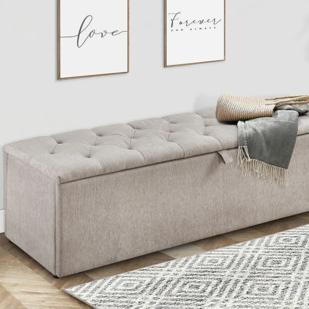 The Ravello Chenille Blanket Box is finished in a lovely, soft to the touch chenille fabric and provides a great amount of storage for blankets and linen. The top surface has been beautifully accented with neatly finished deep buttoning detail for a luxe look in the home. Ideal as hallway storage or a perfect accompaniment to the Ravello Bed, and even doubles up as extra seating space.