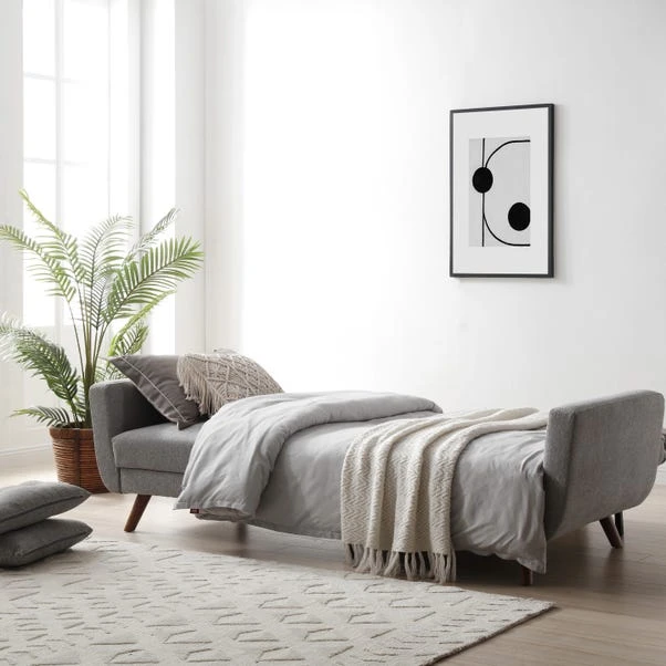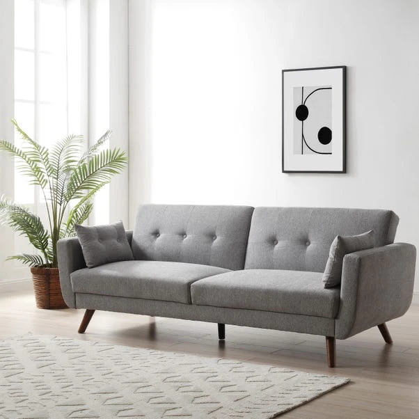 Part of the Bobby range, this 3 Seater Sofa Bed is as practical as it is stylish. Boasting an easy to use click clack mechanism for efficiency, and button back detailing for a sophisticated edge. 2 waist cushions included.