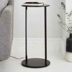 Dunelm Aiko Side Table With 1 LED Light Black And Faux Marble