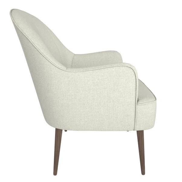 Featuring a clean, minimalist design the Bailey accent chair boasts a sleek wooden design, crafted from beech and polyester with a stunning finish that contrasts beautifully against the upholstery. This stunning chair is crafted with a soft touch cotton fabric with pinched back detail, and offers a generously padded foam and fibre seat padding and back rest for maximum comfort. Complete with angled legs and stylish sloped arms, this versatile chair will enhance any living space.